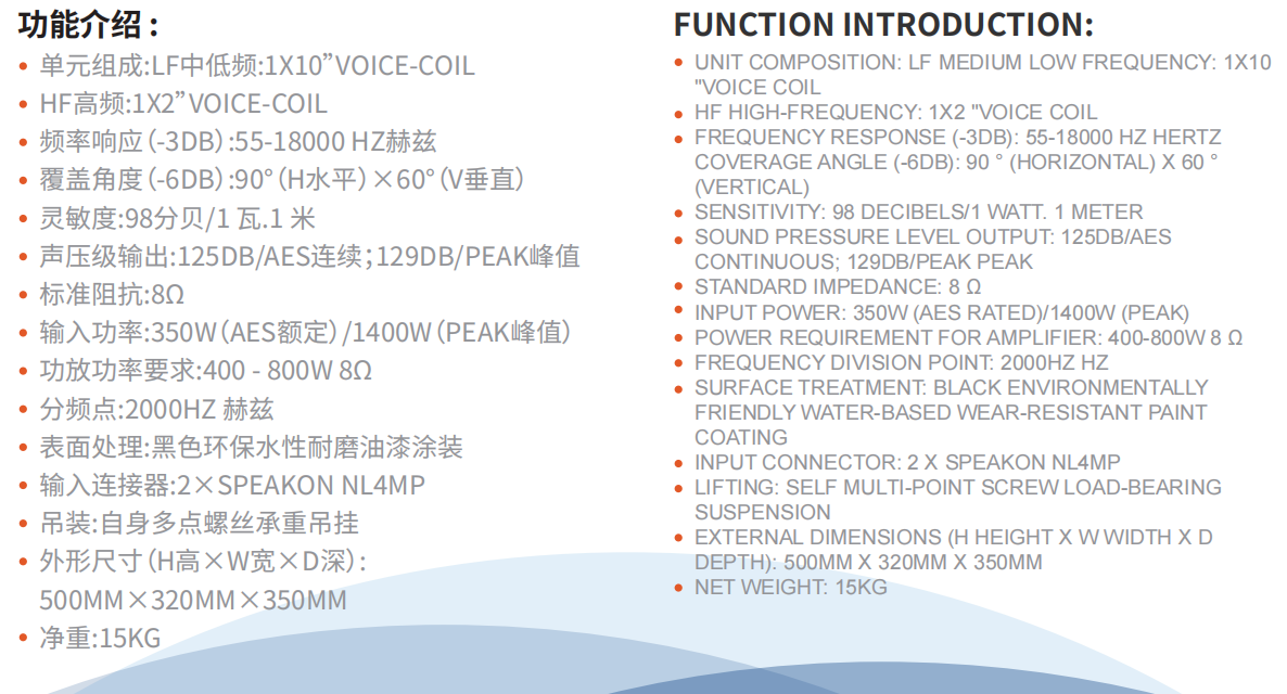 LF中低(dī)頻:1x10” HF高(gāo)頻:1x2”
