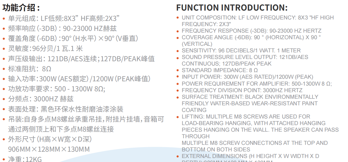 LF低(dī)頻:8x3” HF高(gāo)頻:2x3”